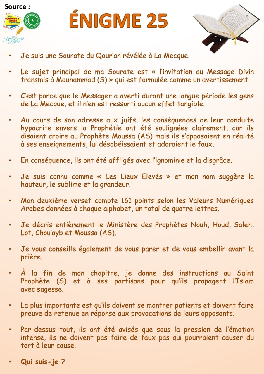 Enigme sur les Sourates du Saint Qour’an n° 25