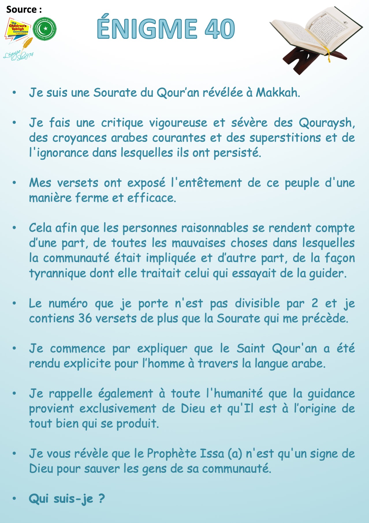 Enigme sur les Sourates du Saint Qour’an n° 40