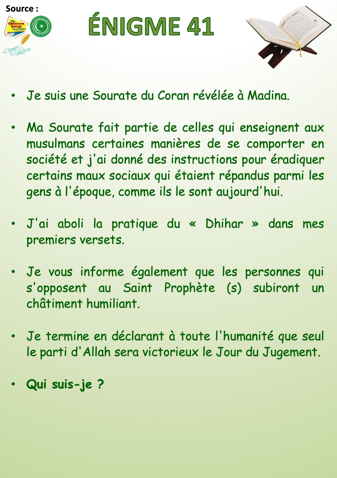Enigme sur les Sourates du Saint Qour’an n° 41