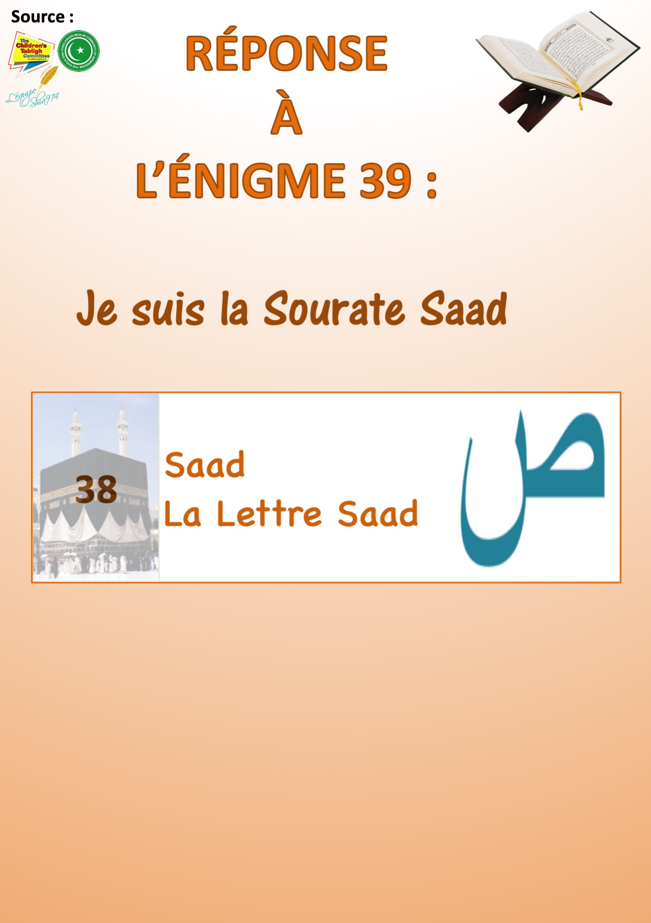 Réponse à l’énigme 39 sur les Sourates du Saint Qour’an