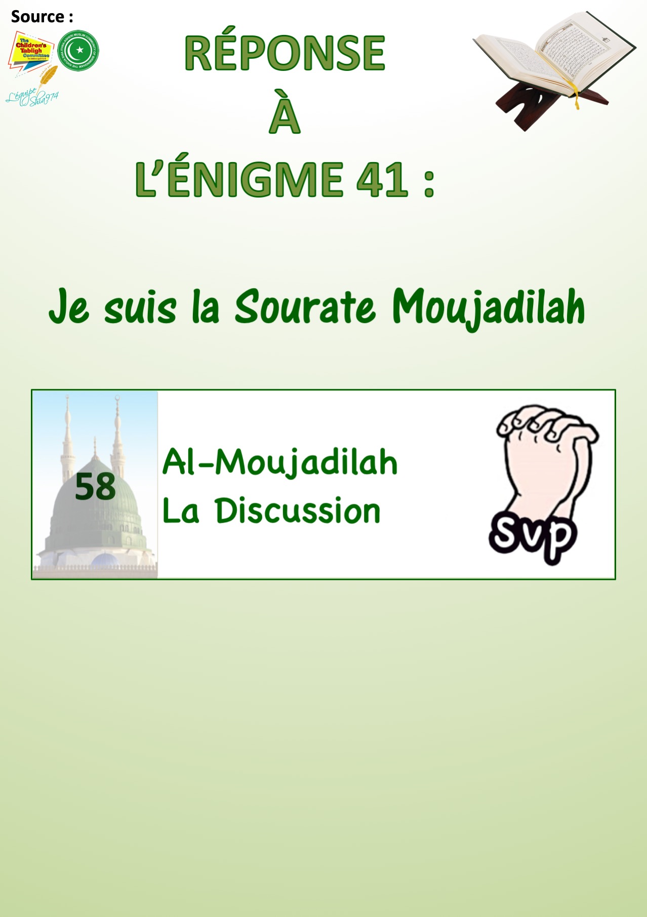 Réponse à l’énigme 41 sur les Sourates du Saint Qour’an