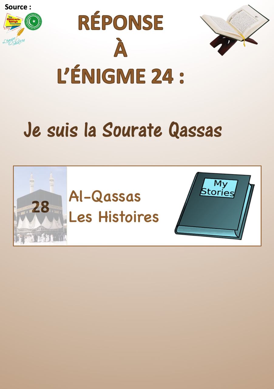 Réponse de l’énigme n° 24 sur les Sourates du Saint Qour’an