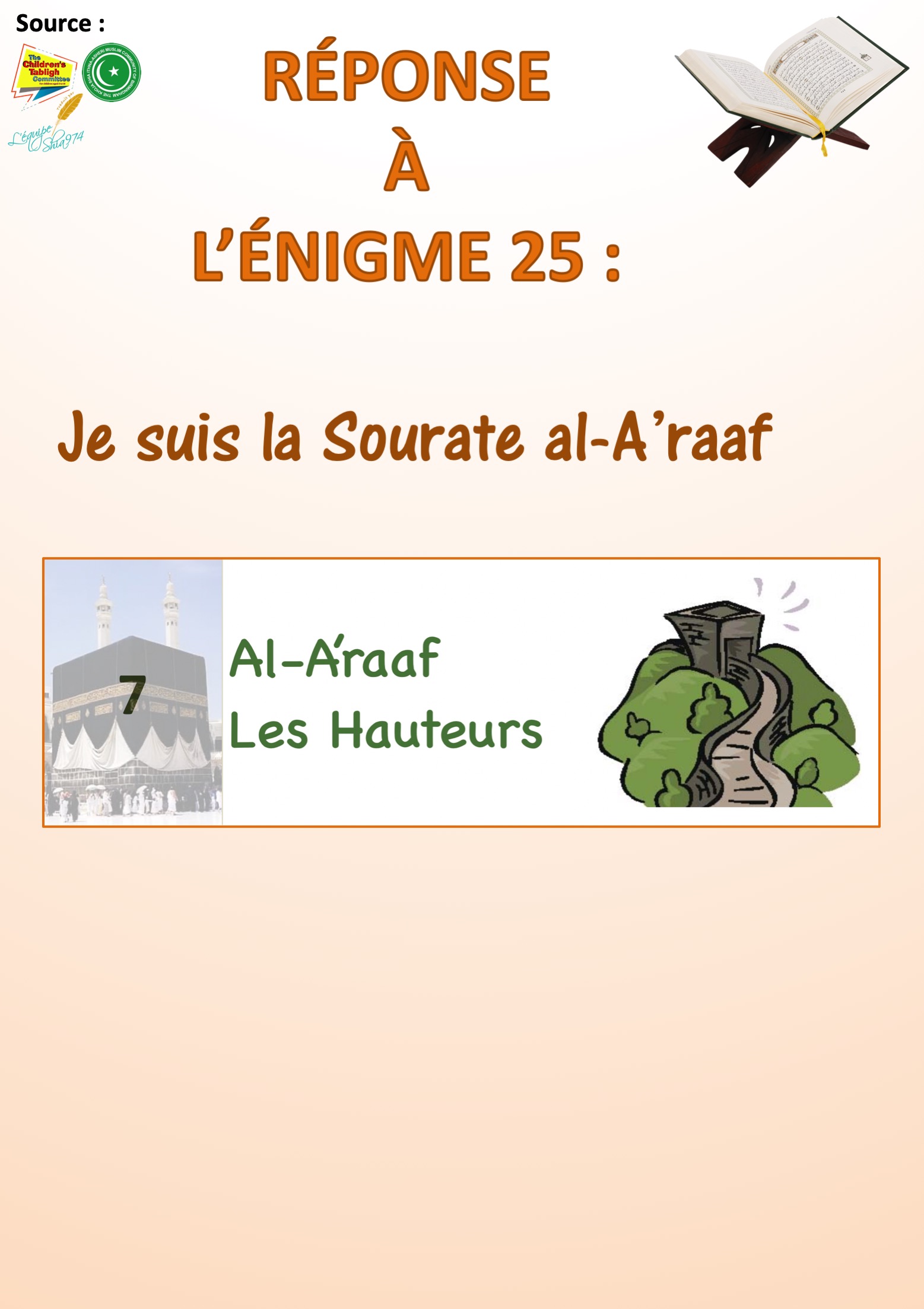 Réponse de l’énigme n° 25 sur les Sourates du Saint Qour’an