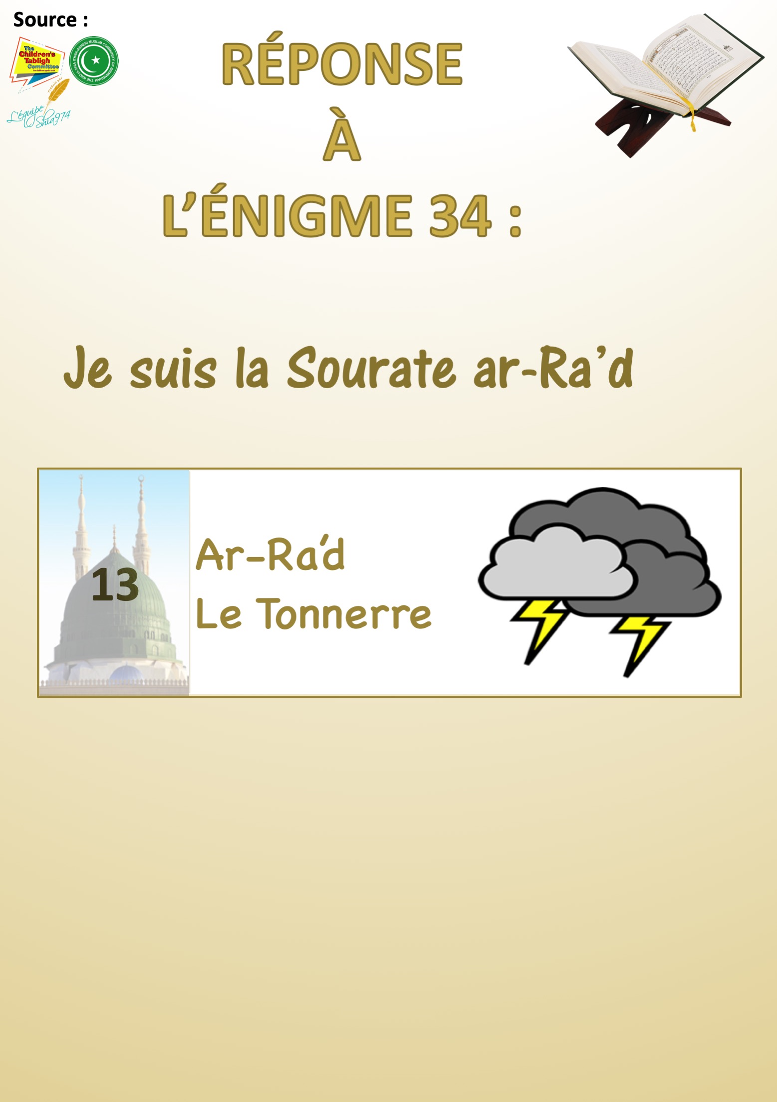 Réponse de l’énigme n° 34 sur les Sourates du Saint Qour’an