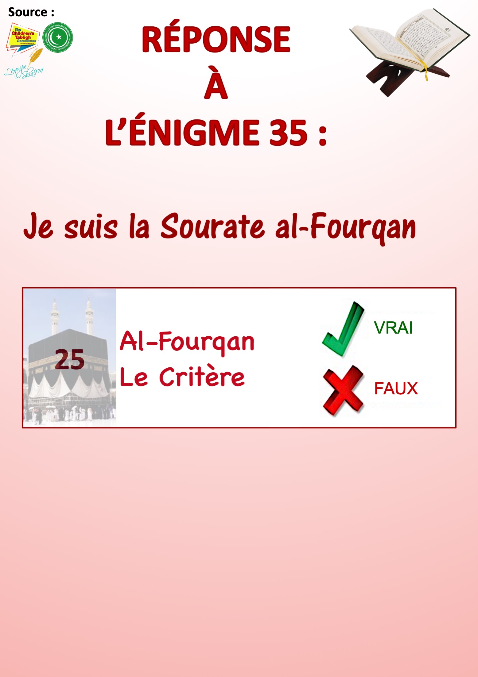 Réponse de l’énigme n° 35 sur les Sourates du Saint Qour’an