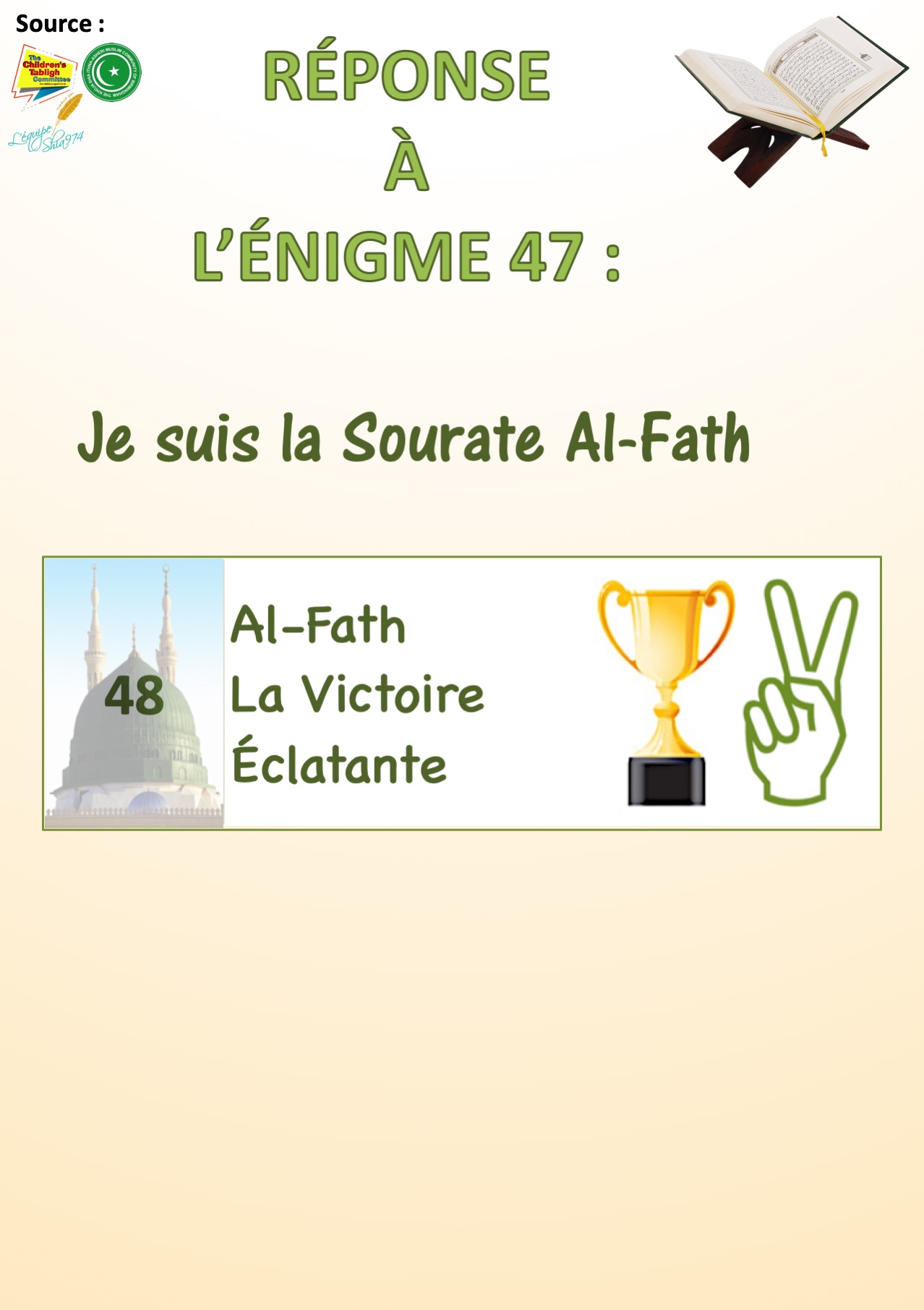 Réponse de l’énigme n° 47 sur les Sourates du Saint Qour’an