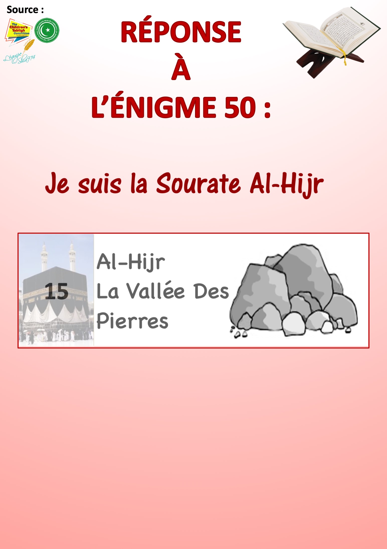 Réponse de l’énigme n° 50 sur les Sourates du Saint Qour’an