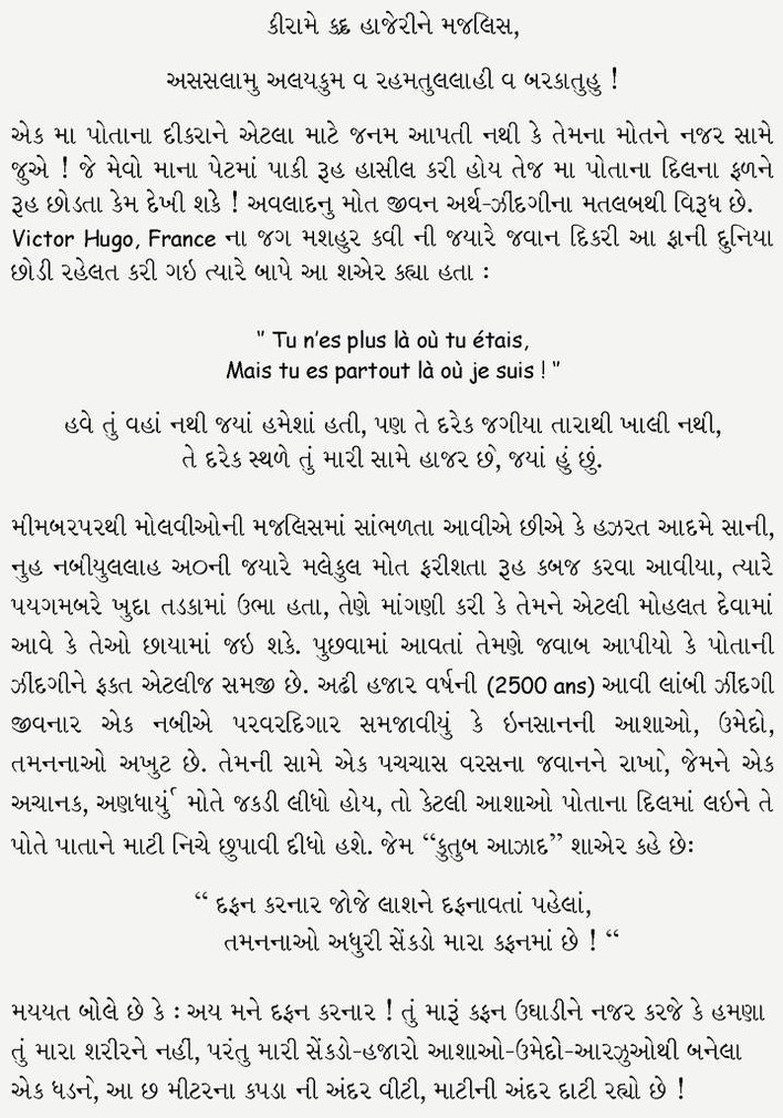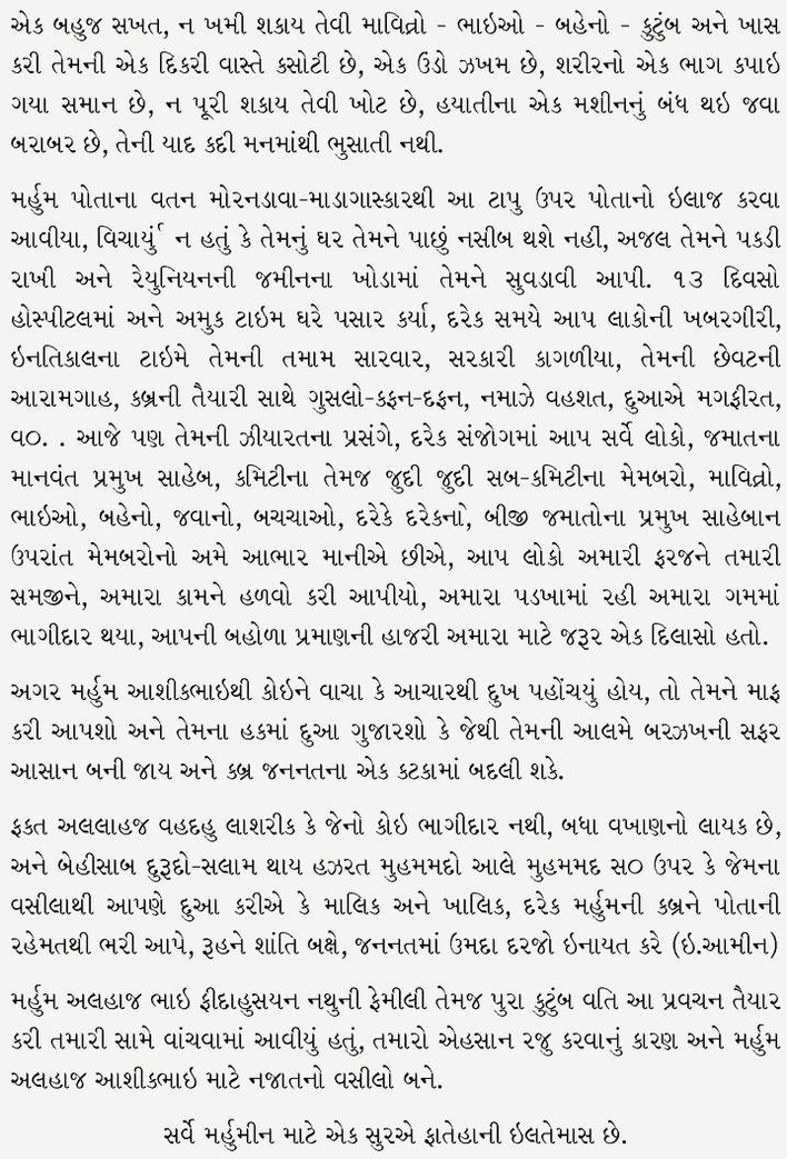 Discours de remerciements Décès Ashik Fidahoussen Nathoo - 20 0ctobre 2014