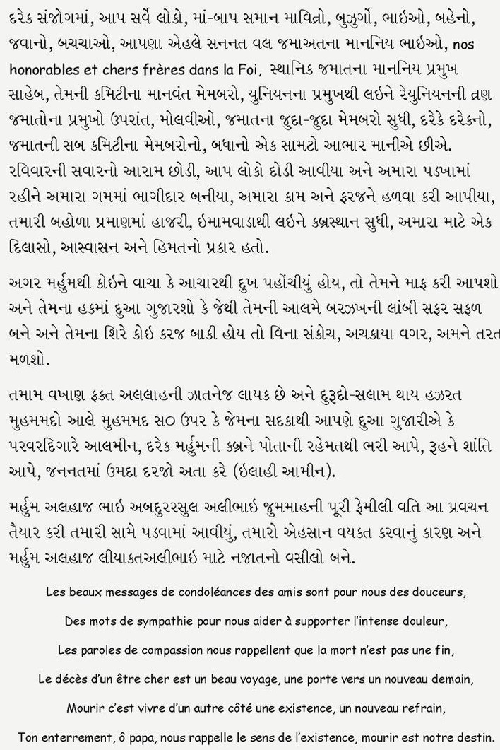 Discours de remerciements Décès Marhoum Lyakatali G.A.Djouma - 29 Sept 2014