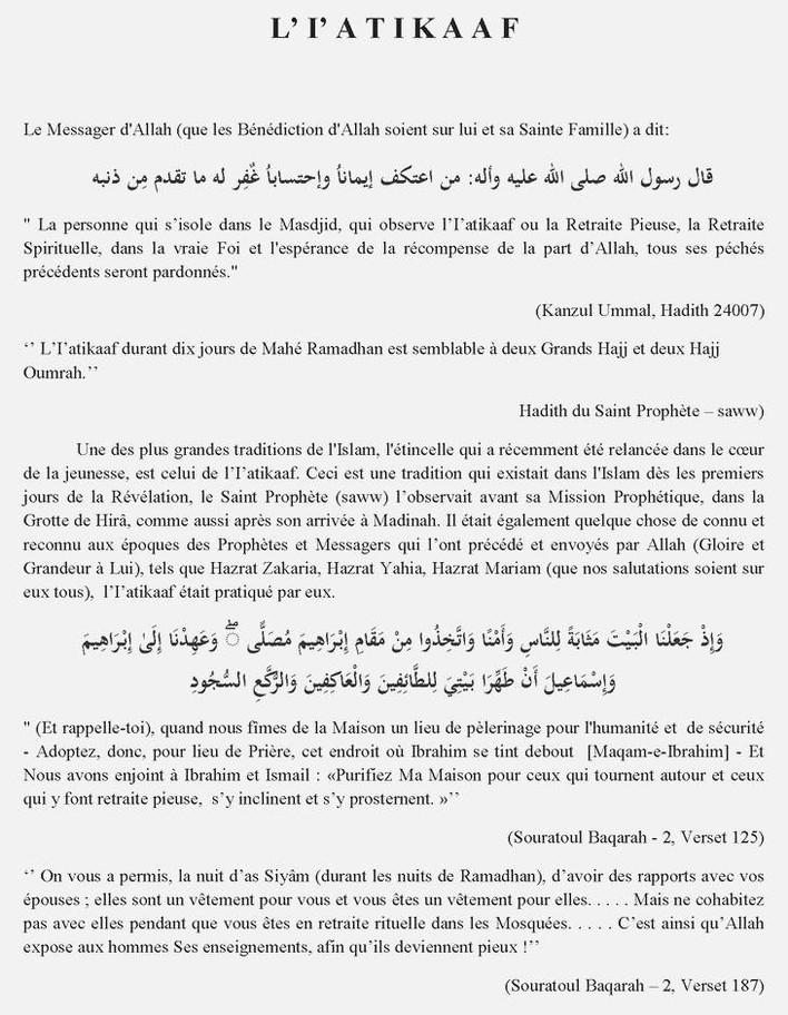 I'atikaaf ou Retraite SpirituelleTélécharger la suite en PDF